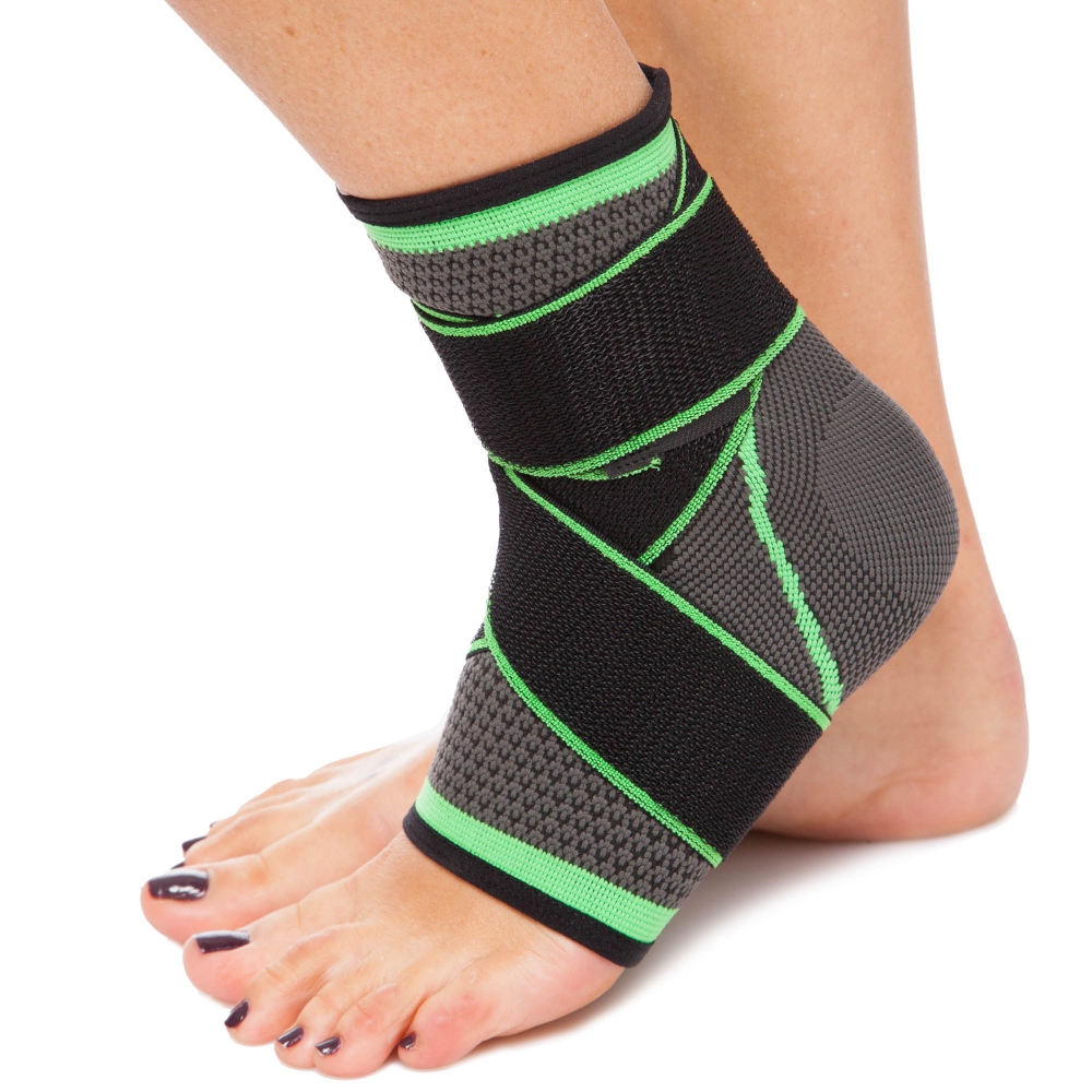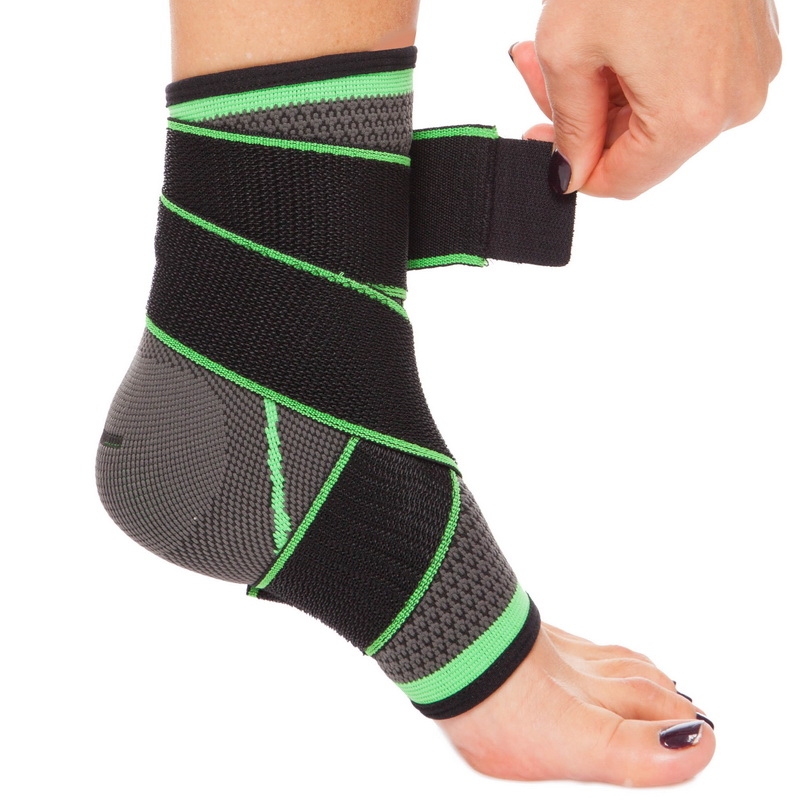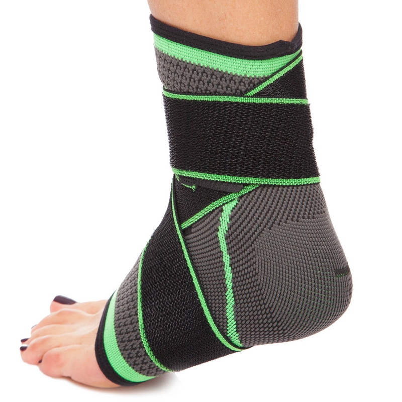 Голеностоп (бандаж голеностопного сустава) эластичный с фиксирующим ремнем (1шт) ST-2504 (р-р S-XL, серый-зеленый)