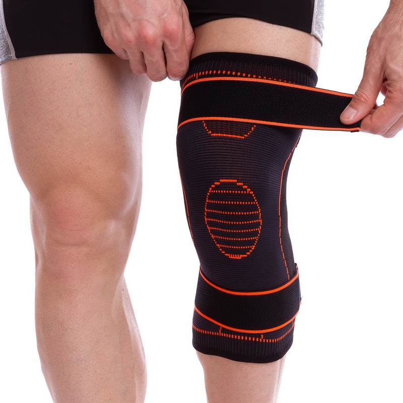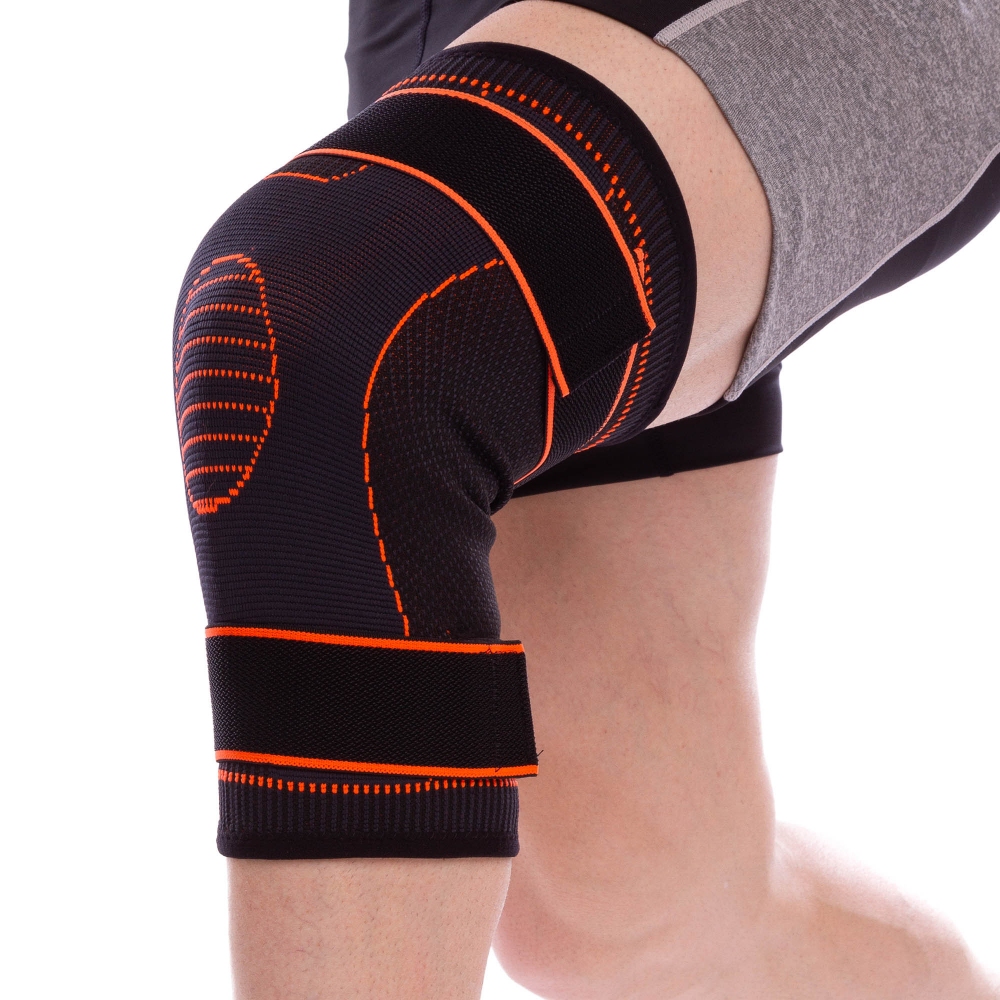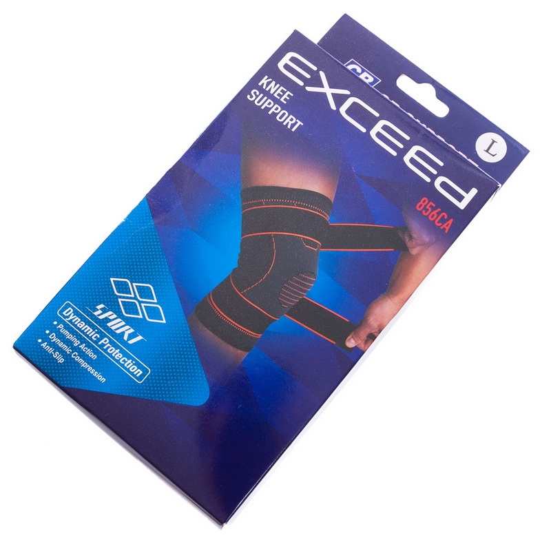 Наколенник эластичный с фиксирующим ремнем (1шт) EXCEEDE 856CA (р-р S-L, серый-желтый)