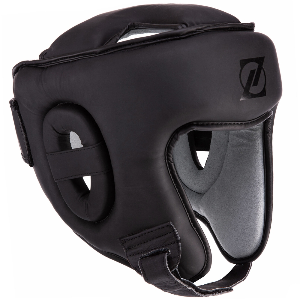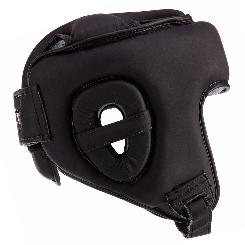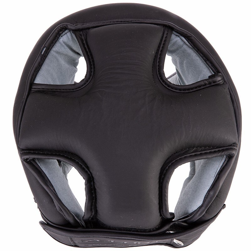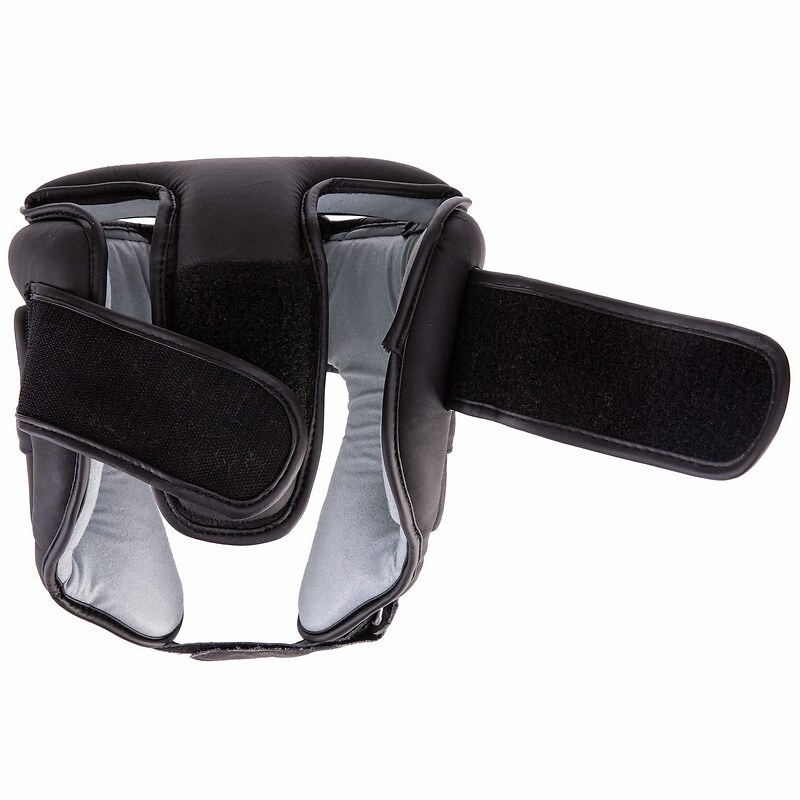 Шолом боксерський відкритий з захистом верхівки ШКІРЯНИЙ Чорний
